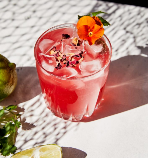 Brew Hibiscus tea and let cool. In a cocktail shaker with ice add tequila, hibiscus tea, agave, lime juice and fresh cilantro. Shake for 30 seconds. Double strain into a cocktail glass filled with ice.
